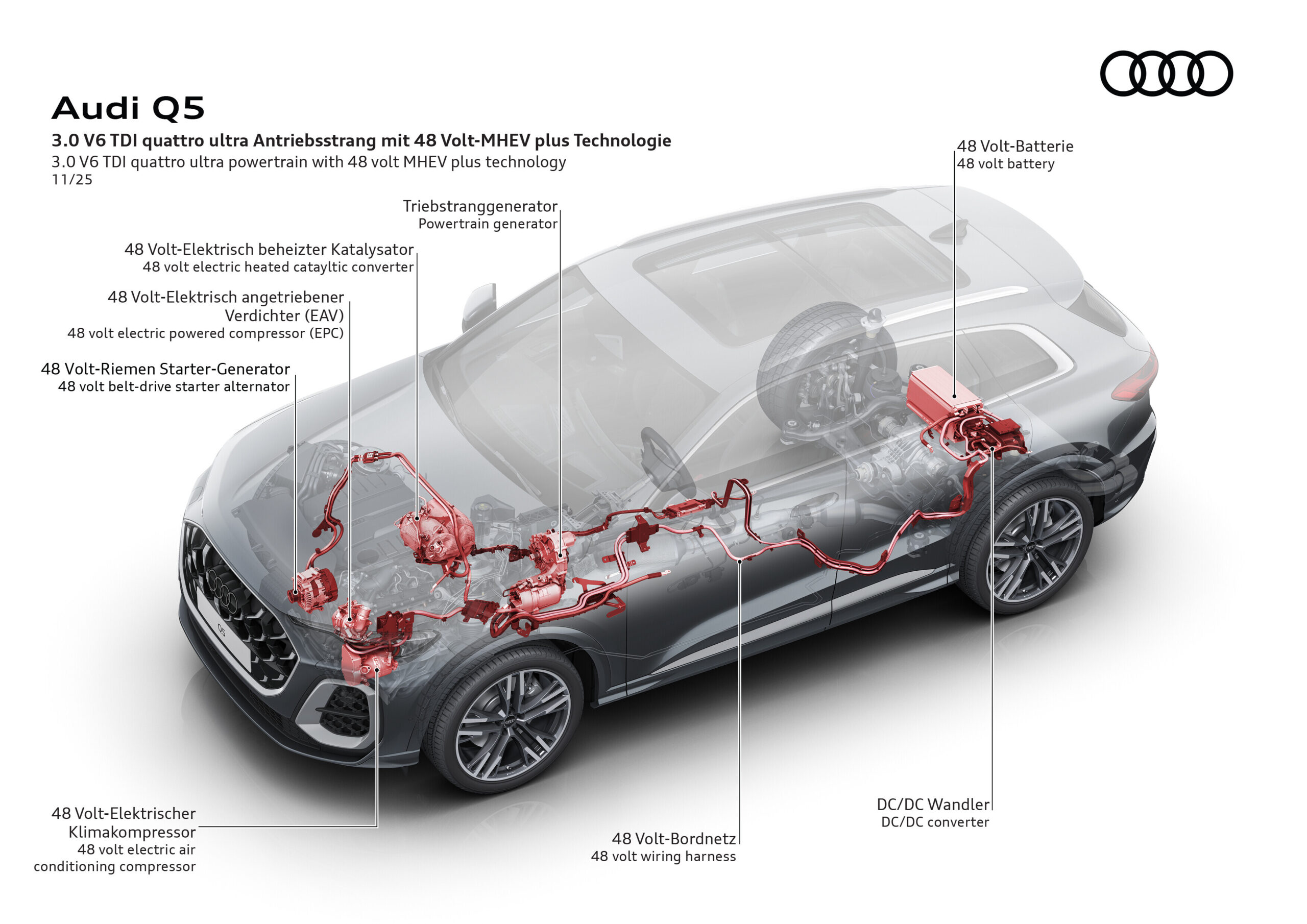 Audi lanza una importante evolución para su motor estrella a nivel mundial: el V6 diésel de tres litros, que ahora integra la sofisticada tecnología MHEV Plus (Mild Hybrid Electric Vehicle o Híbrido Leve). Este nuevo propulsor, disponible para el Audi Q5 y el Audi A6 en mercados internacionales, es un hito de eficiencia y rendimiento.